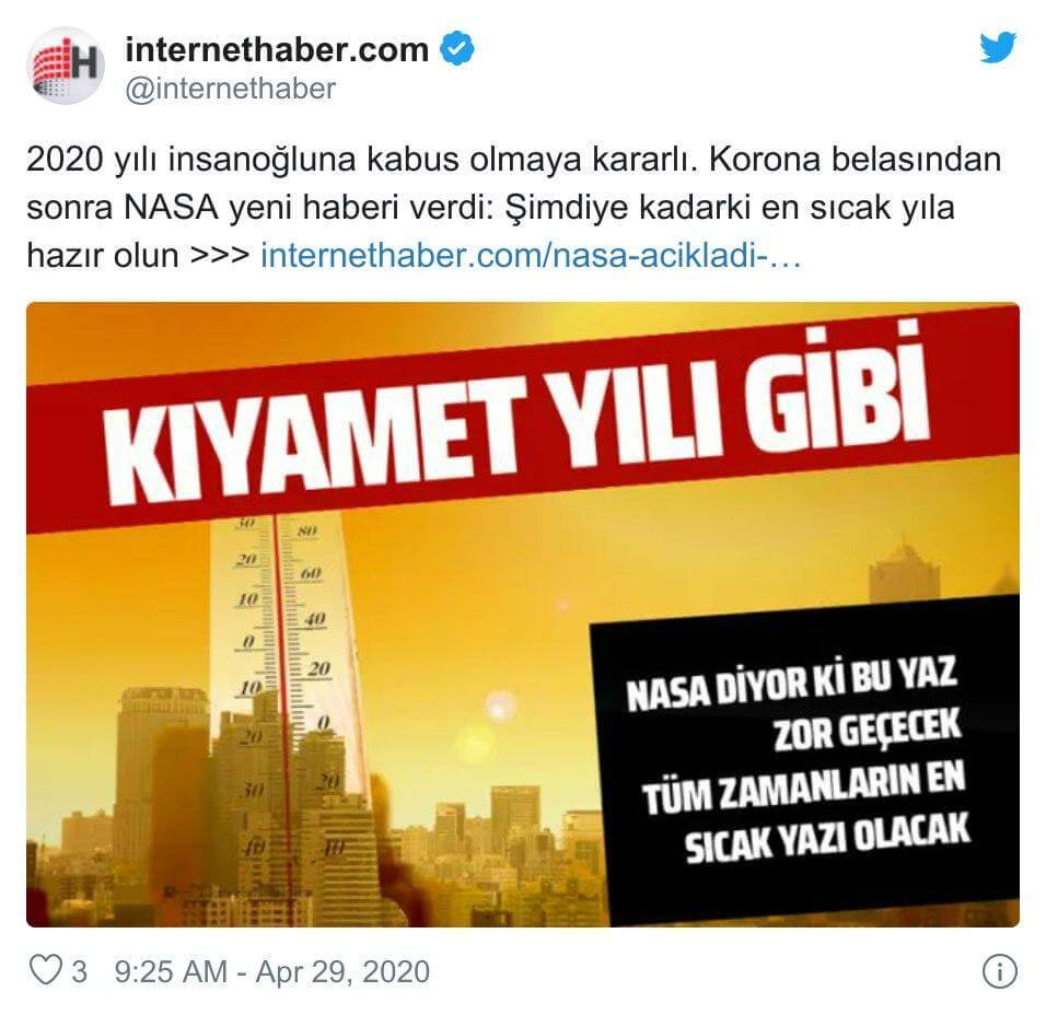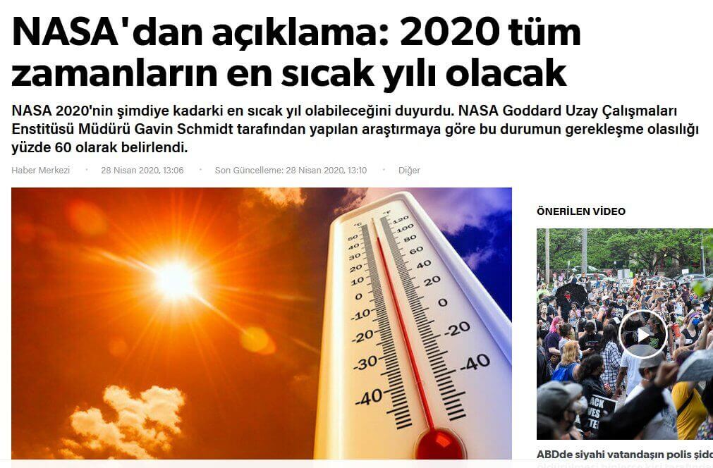2020 yılının buzul çağı başlangıcını aktaran haber platformlarının birkaç ay öncesine kadar NASA’nın 2020 yılının en sıcak yıl olacağına dair açıklama yaptığına yönelik asılsız iddiayı paylaştığını da bu vesileyle hatırlatmış olalım.