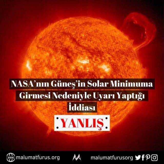 NASA’nın Güneş’in Solar Minimuma Girmesi Nedeniyle Aşırı Soğuk, Ürün Kaybı, Kıtlık, Güçlü Volkanik Patlama Yaşanacağı Yönünde Uyarı Yaptığı İddiası Doğru Değil