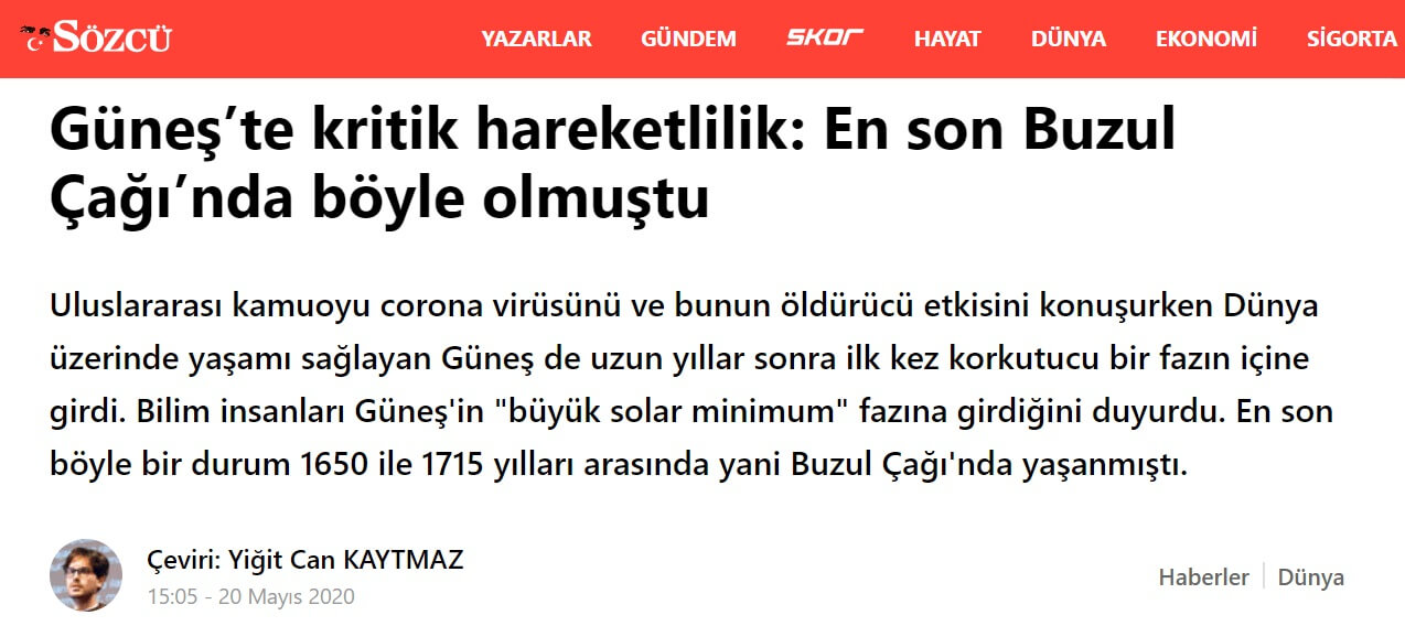 Yani, basınımızda aktarılan “en son böyle bir durum 1650 ile 1715 yılları arasında yani Buzul Çağı’nda yaşanmıştı” iddiasının herhangi bir doğruluk payı bulunmuyor.