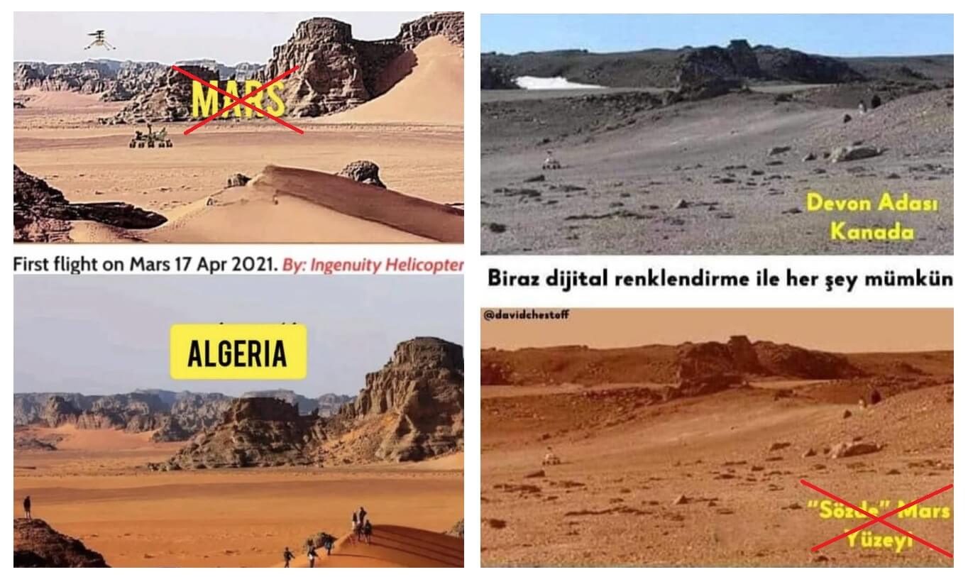 Nasa’nın Mars’a uzay aracı göndermediği, Mars yüzeyine ait olduğunu belirterek paylaştığı fotoğrafların Cezayir’de bir çöle ve Kanada’nın Devon Adası’na ait olduğu iddiası doğru değil.