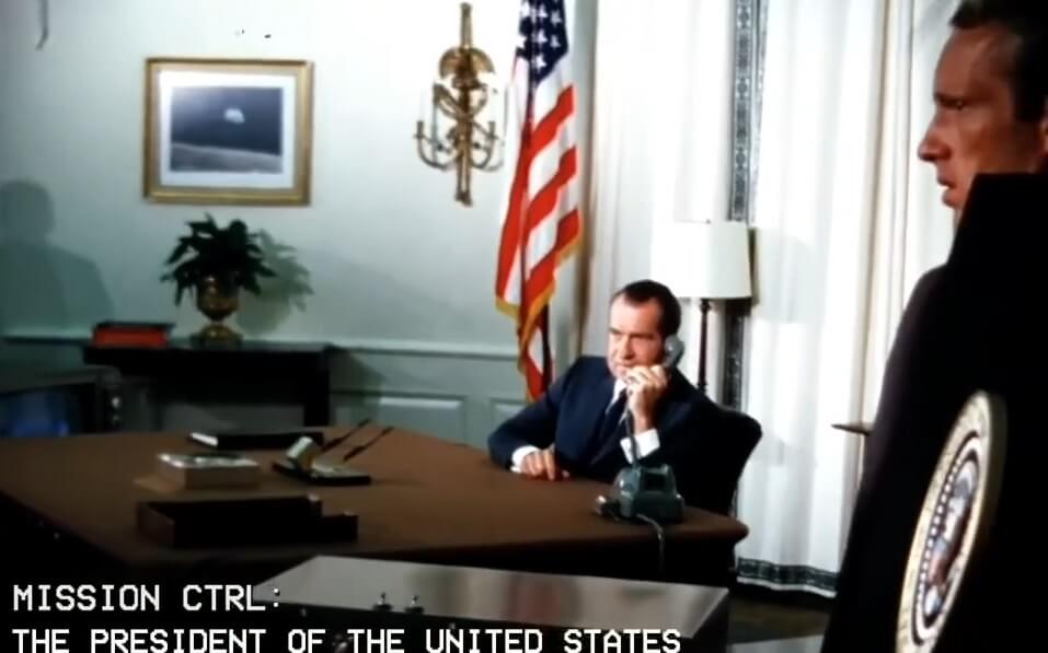ABD Başkanı Richard Nixon Ay’a ayak basan astronotlar Neil Armstrong ve Edwin “Buzz” Aldrin ile telefon görüşmesi yaparken arkasında duvarda görülen “Earthrise” olarak adlandırılan Ay yüzeyi üzerinde yükselen Dünya fotoğrafı, aynı Apollo 11 görevi sırasında değil, yaklaşık 7 ay önce Apollo 8 misyonu tarafından çekildi.