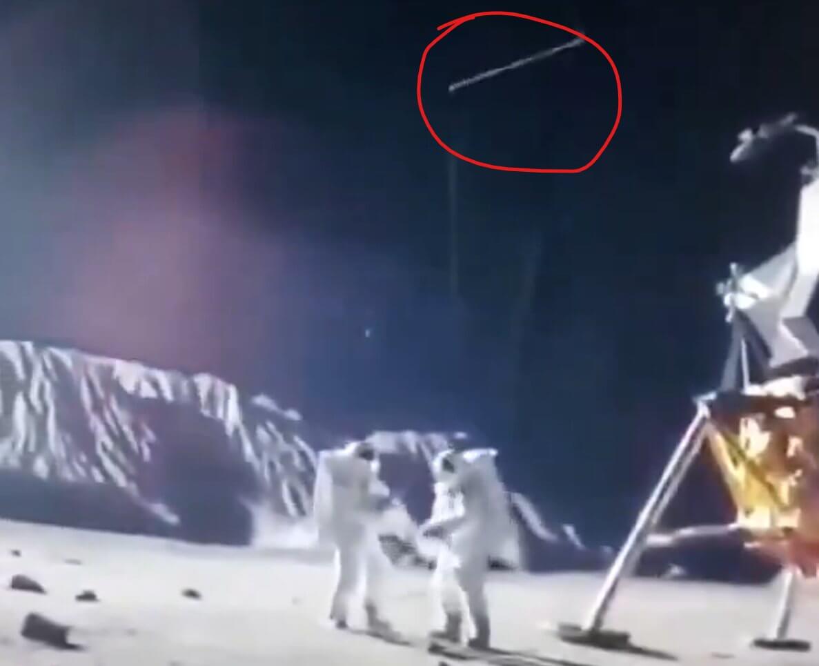 NASA’nın 20 Temmuz 1969’da Ay’a iniş görüntülerinin kurgu olduğu iddiasıyla kullanılan video, yönetmen Adam Stewart’ın fikrinden ilhamla 2002 yılında Londra’daki bir stüdyoda kaydedilen, Ay’a inişle ilgili komplo teorilerini tiye alan çekimden alınmış.