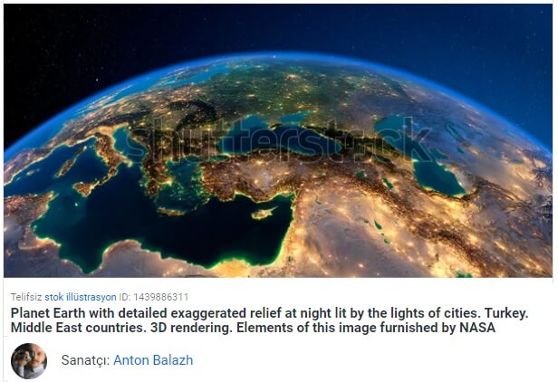 Sanılanın aksine Türkiye, Doğu Akdeniz havzası ve Arap Yarımadası görselleri NASA tarafından kaydedilmemiş, Rus fotoğrafçı ve grafik tasarımcı Anton Balazh tarafından 3 boyutlu olarak dijital ortamda hazırlanmış.