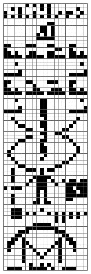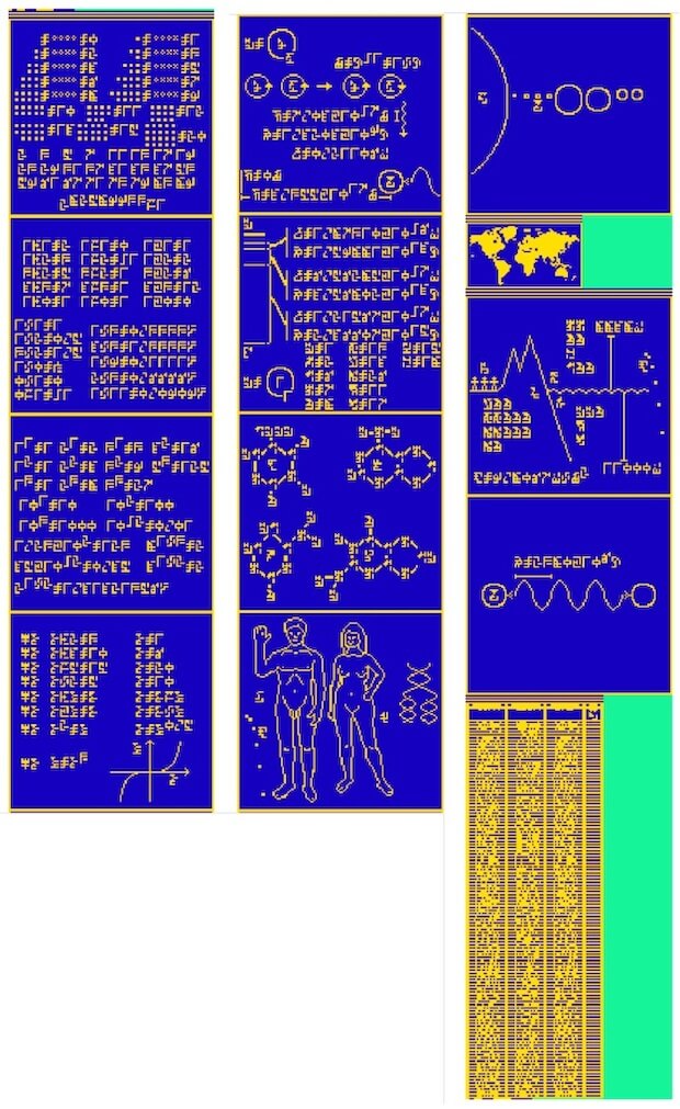 El sallayan erkek ve kadının dijitalleştirilmiş tasvirlerini içeren dünya dışı varlıklarla iletişim için gönderilmesi önerilen “bitmap” adı verilen grafik görüntüleme yöntemiyle hazırlanan mesaj görselleri şu şekilde: