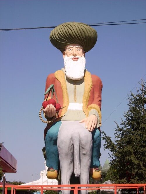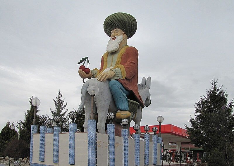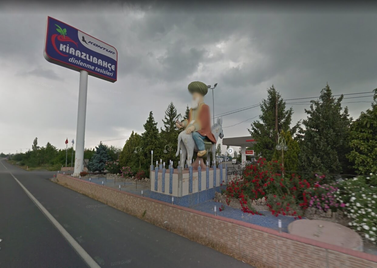 Estetikten uzak görünümüyle kamuoyunun tepkisini çeken (Konya-Afyonkarahisar Karayolu üzerindeki Kirazlı Bahçe adlı dinlenme tesisinde yer alan) Nasrettin Hoca’nın eşeğe ters binmiş heykeline ait görsel üzerinde oynanarak tekrar dolaşıma sokulmuş.