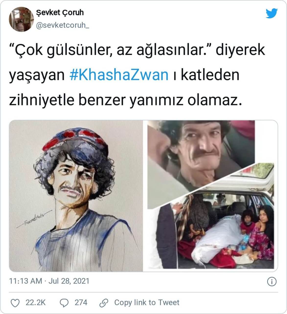 ““Çok gülsünler, az ağlasınlar.” diyerek yaşayan #KhashaZwan ı katleden zihniyetle benzer yanımız olamaz.”