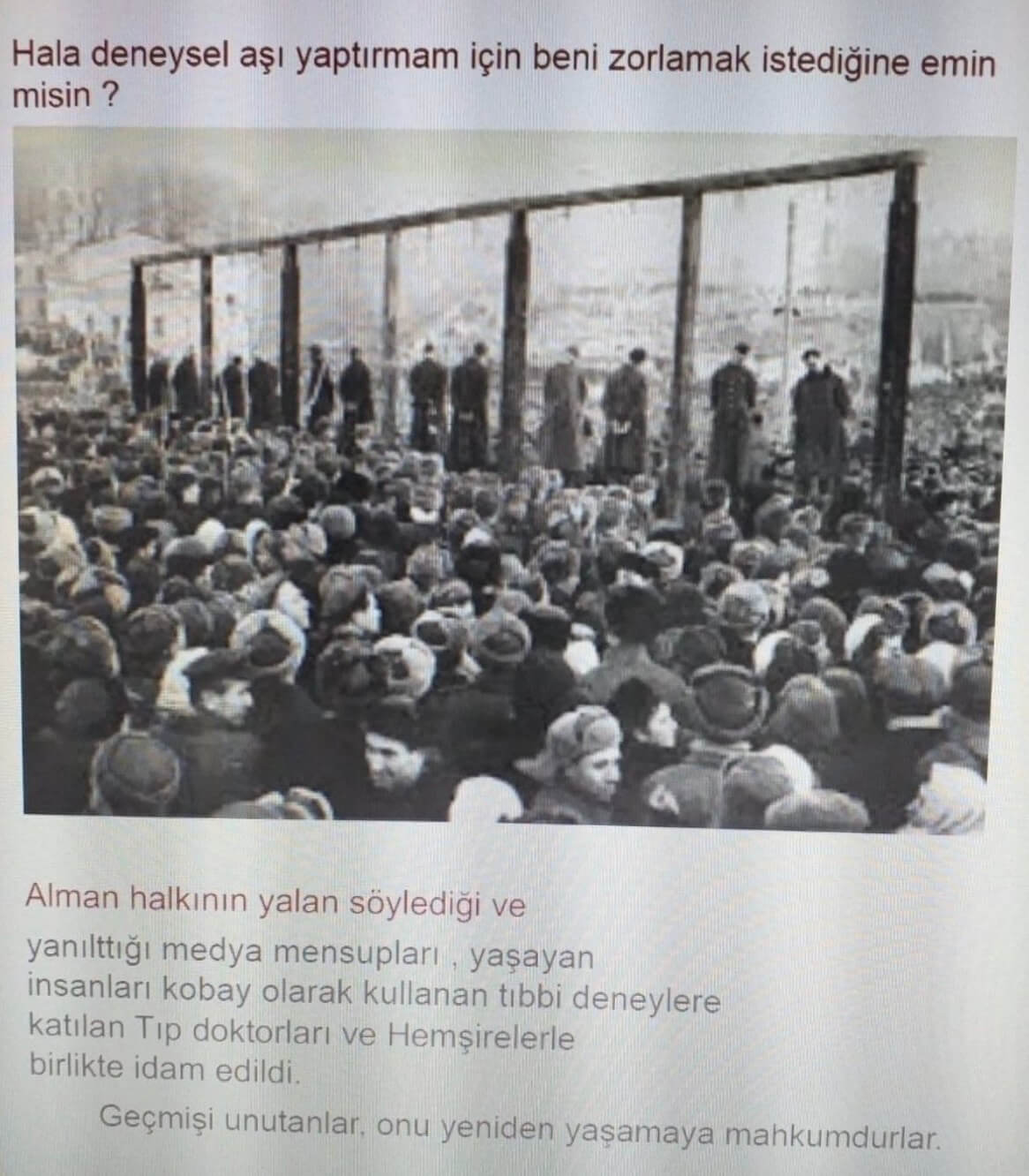Bazı aşı karşıtlarının “zorunlu aşı” uygulamasına karşı tehdit mahiyetinde paylaştığı bir görseli konu edineceğiz: