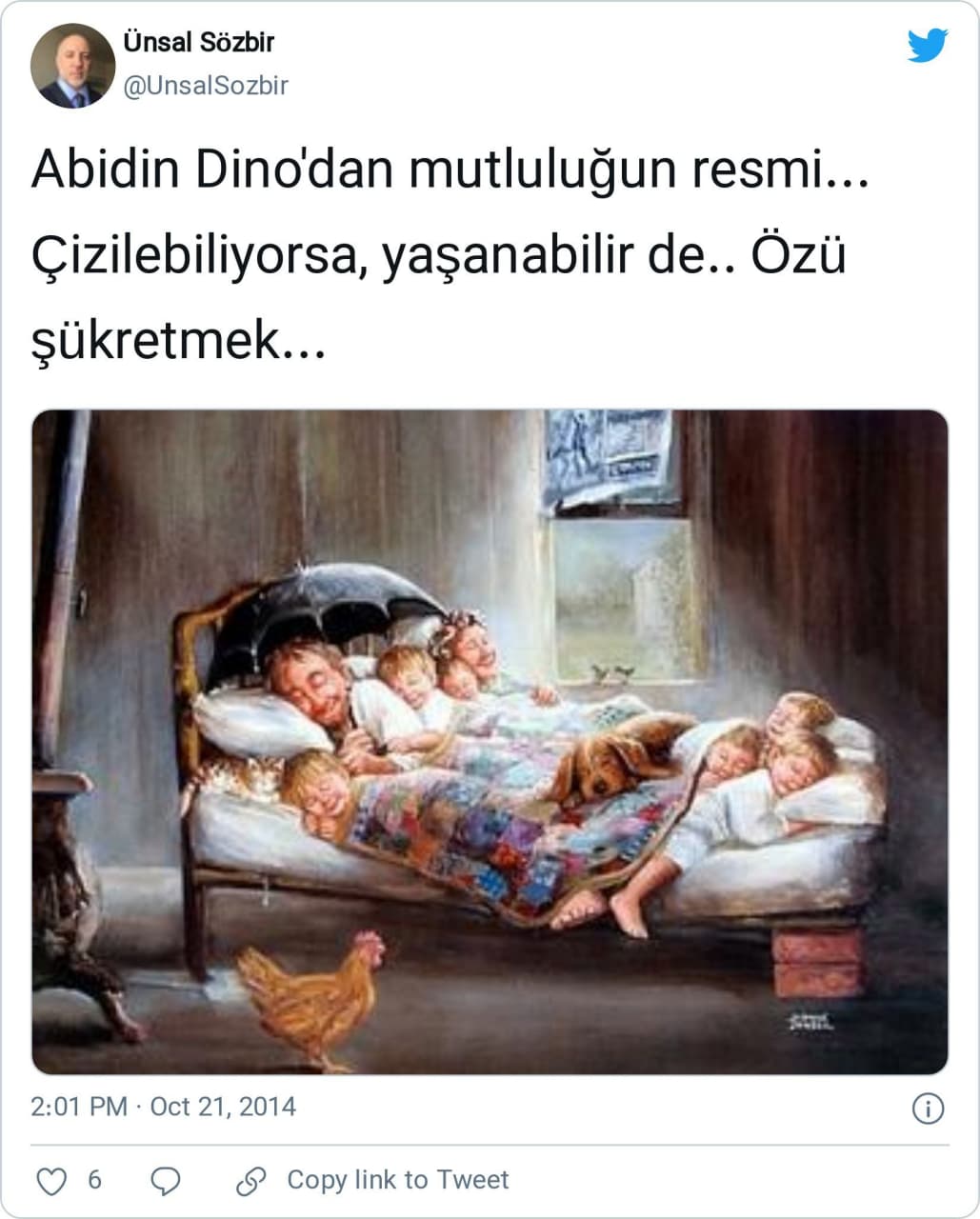 “Abidin Dino’dan mutluluğun resmi… Çizilebiliyorsa, yaşanabilir de.. Özü şükretmek…”