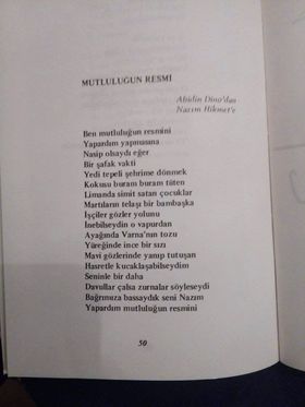 Ancak, Nâzım Hikmet’in “Saman Sarısı” şiirindeki “Sen mutluluğun resmini yapabilir misin Abidin?” sorusuna yanıt mahiyetindeki “Mutluluğun Resmi” şiiri Bahattin Gemici imzasını taşıyor.