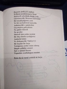 Nâzım Hikmet’in 1961 yılında gerçekleştirdiği Varşova-Krakof-Prag-Moskova-Paris-Havana-Moskova arasındaki seyahatinin eseri olan, eşi Vera Tulyakova için yazdığı “Saman Sarısı” adlı şiiri şu şekilde: