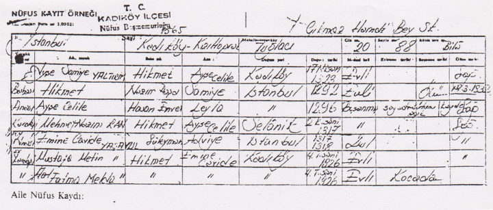 Nâzım Hikmet’in Nüfus ve Vatandaşlık Genel Müdürlüğü kayıtlarında tam adı “Mehmet Nâzım Ran” şeklinde.