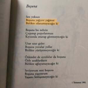 Bir düşün oğlum!Bir düşün ve mezarların hududunu aşma!Kendine güven üstatBabana değil,Bir ölüyü koluna takıp dolaşma!Öyle zart zurt eşilmez toprağı gidenlerin!Rahat bırak oğlumRahat bırak uyusunO muhterem “şehid-i hürriyet” Bey pederin!Hem böyle daha iyi…Çünkü bak ortadaNe yeni bir İngiliz-BoerHarbi var,Ne de tebrik isteyen bir İngiliz elçiliği…Ölüleri rahat bırak oğlum.Rahat bırak uyusun benim de gidenlerim!Sen de bilirsin ki benNe dedemdenMiras bekledim,Ne babamdan şeref, şan!Hasep, nesep, kan, soy sop işinde yoğum.Çünkü ne soyu sicilli bir buldoğumNe de tecrübelik bir tavşan.Ben sadece ölen babamdan ileri,Doğacak çocuğumdan geriyim,Ve bir kavganın adsız neferiyim.