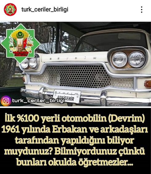 Türkiye’nin ilk yerli otomobili Devrim’i Necmettin Erbakan’ın eseri olduğunu öne süren paylaşım