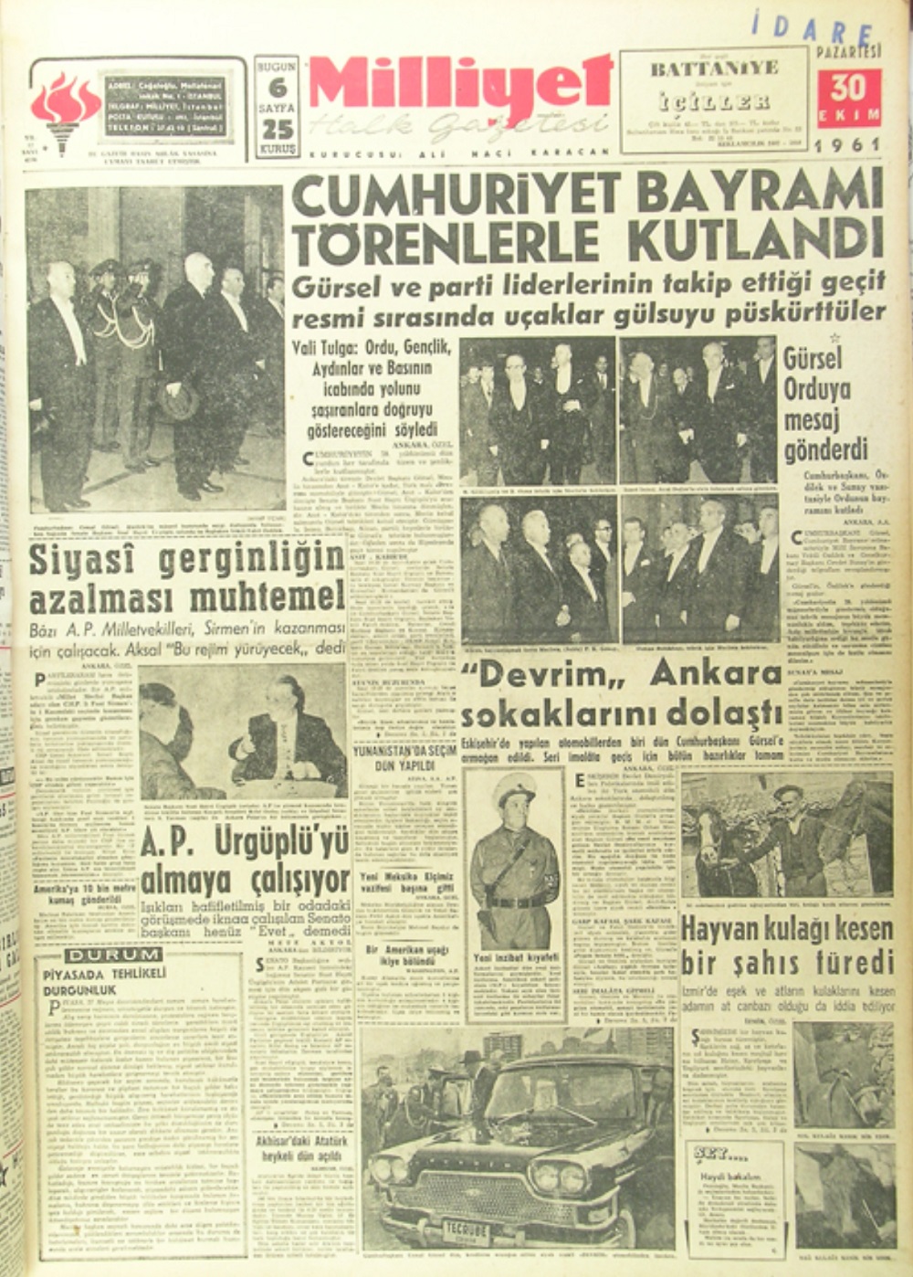 Ertesi gün bütün gazetelerin söz birliği etmişçesine “ 100 metre gidip bozuldu “ başlığını attıkları 2 numaralı Devrim, aynı gün Hipodrom’ daki geçit törenine katılıyor, ne bundan, ne de Cemal Paşa’nın Anıtkabir’e bir başka Devrim otomobili ile gittiğinden söz ediliyor; yalnızca haber, yorum ve fıkralarda harcanan bunca paranın boşa gittiğinden dem vuruluyordu. Oysa aynı yıl Tarım Bakanlığı bütçesine konmuş bulunan “At neslinin ıslahı “ için 25 Milyon TL ödenek ve sonucundan kimse söz etmiyordu.”