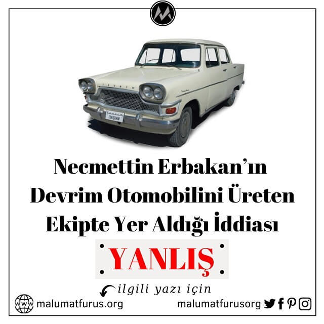 Türkiye Cumhuriyetinin eski başbakanlarından ve Milli Görüş hareketinin lideri Necmettin Erbakan’ın (1926-2011) Türkiye’nin ilk yerli otomobil üretim projesi olan Devrim Otomobillerinin üreticisi ya da planlayıcısı olduğu iddiası sıklıkla sosyal medyada yaygın şekilde paylaşılmaya başladı.