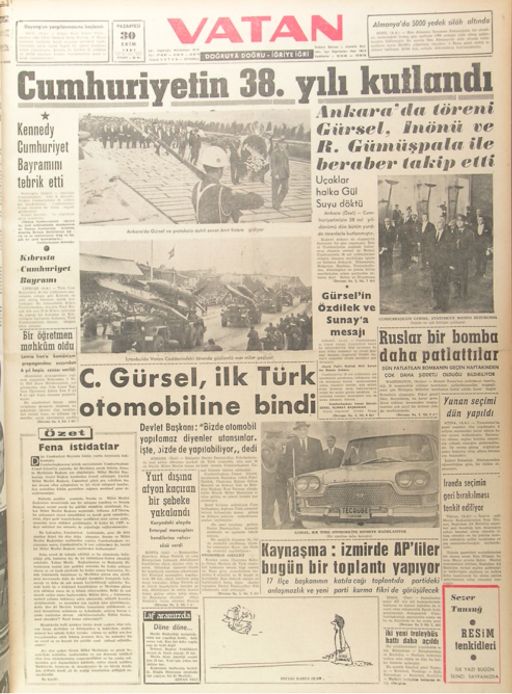 Vaatan Gazetesinin 30 Ekim 1961 tarihli sayısında Devrim Arabalarının tanıtımı haberleştirilmişti
