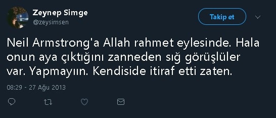 Neil Armstrong’un Ay’da ezan sesini duymasının ardından Müslüman olduğu ve Ay’da “Good luck Mr. Gorsky”, yani “İyi Şanslar Bay Gorsky” dediğine ilişkin şehir efsanelerini daha önce incelediğimiz yazılarımızı incelemek isteyebileceğinizi düşünüyoruz.
