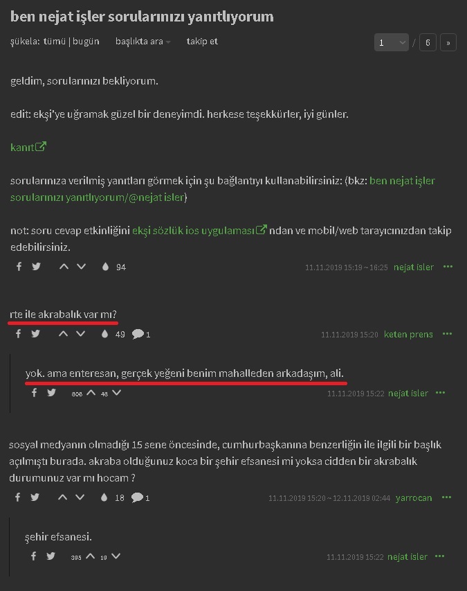 Yarrocan: “Sosyal medyanın olmadığı 15 sene öncesinde, cumhurbaşkanına benzerliğin ile ilgili bir başlık açılmıştı burada. Akraba olduğunuz koca bir şehir efsanesi mi yoksa cidden bir akrabalık durumunuz var mı hocam?”