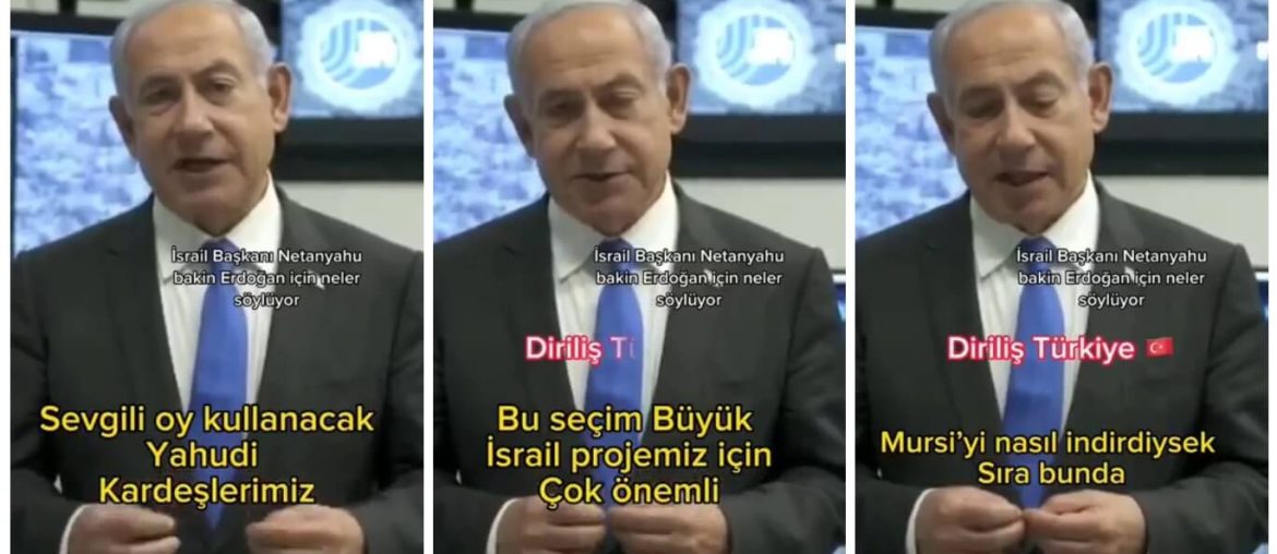 Videoda İsrail Başbakanı Binyamin Netenyahu’nun 2023 Seçimleri İle İlgili Konuştuğu ve “Mursi’yi Nasıl İndirdiysek, Sıra Erdoğan’da” Dediği İddiası Doğru Değil Videoya kurgu alt yazı eklenmiş ve seslendirme yapılmış. Videonun orijinali, Binyamin Netenyahu’nun 4 Mayıs 2023 günü Şin Bet Özel Harekat Merkezine yaptığı ziyaret esnasında kaydedilmiş. Netenyahu, söz konusu videoda Türkiye seçimleri ya da Cumhurbaşkanı Erdoğan hakkında … Binyamin Netanyahu’nun Türkiye Seçimleri Hakkında “Mursi’yi Nasıl İndirdiysek, Sıra Erdoğan’da” Dediği Sanılan Video okumayı sürdür