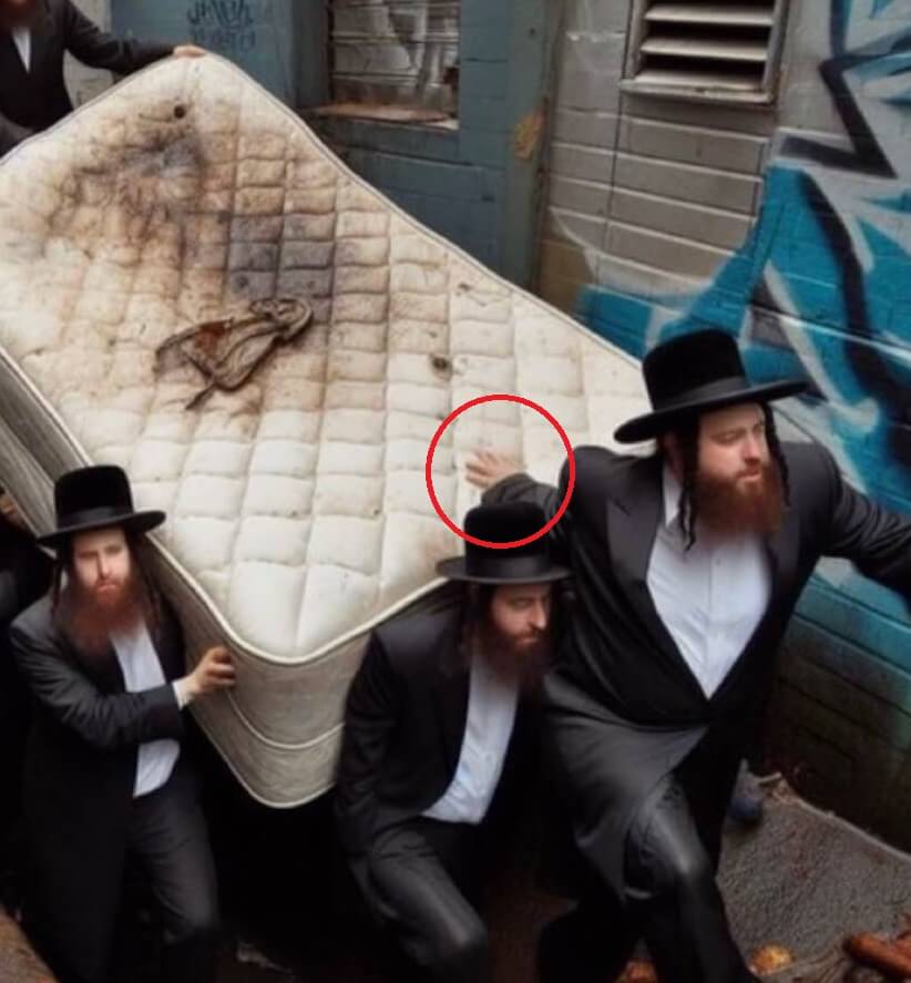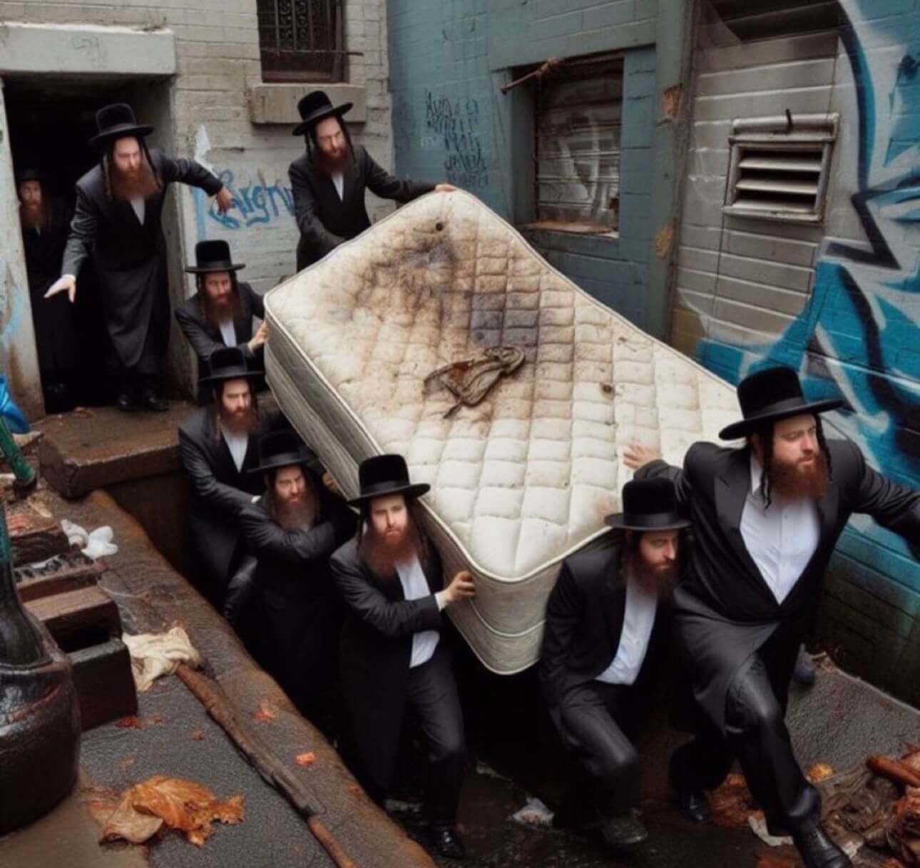 Ortodoks Yahudilerin kirli bir yatağı sırtladığı görülen bir görsel New York’taki polis baskınıyla ilgili haberlerde ve sosyal medya paylaşımlarında kullanıldı.