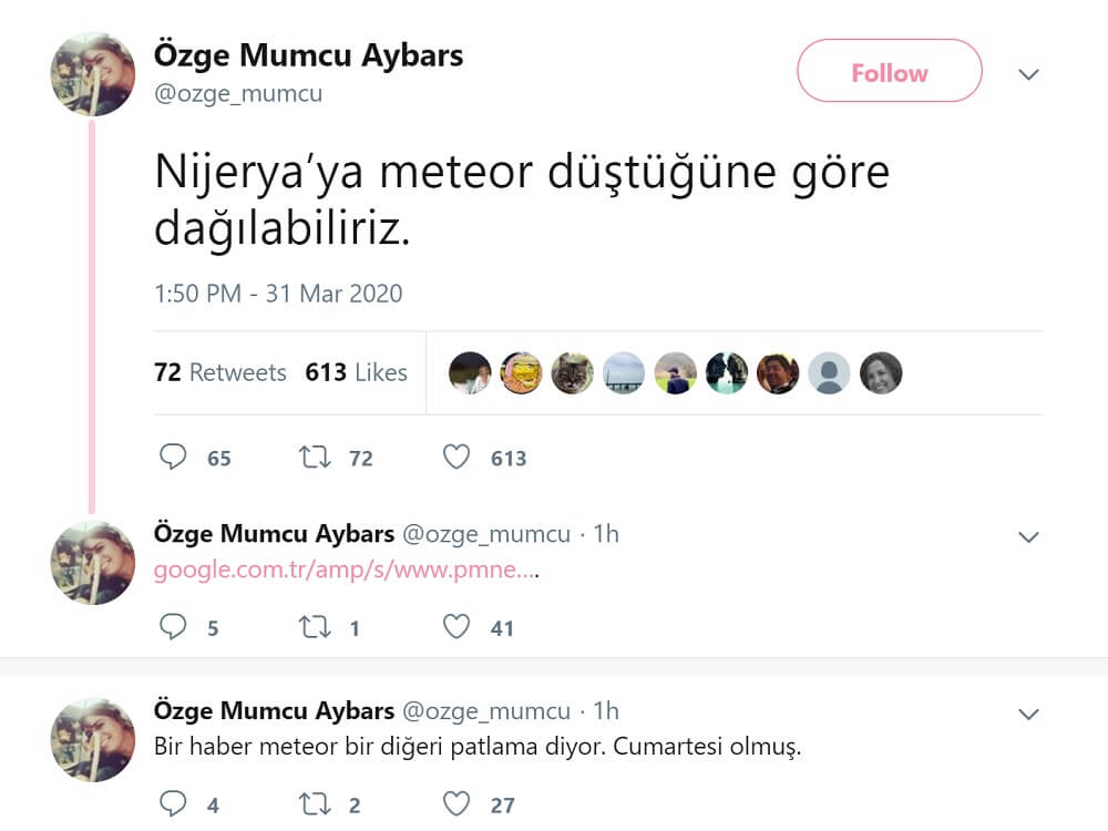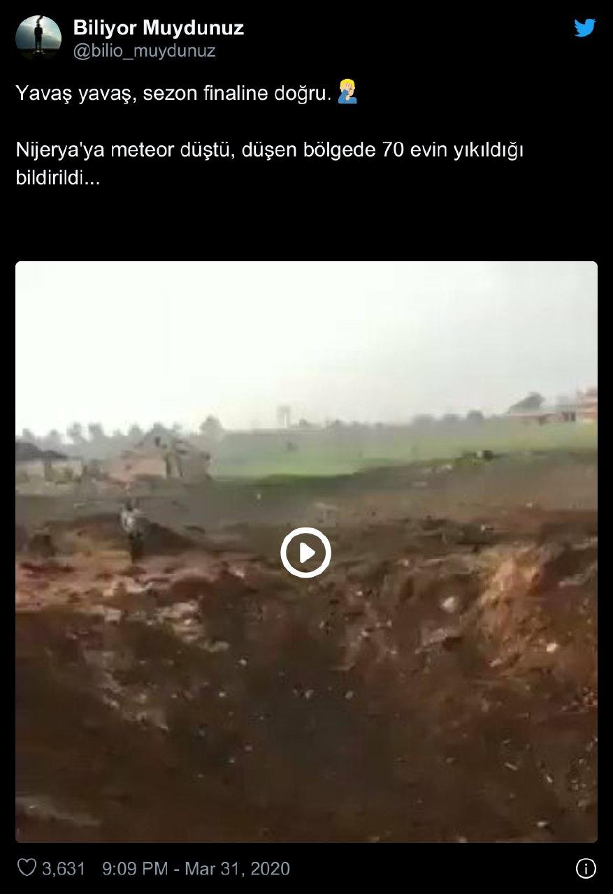 “Nijerya’da meteor düştü. Bölgede 70 Ev Yıkıldı, 13 Kişi Öldü.. 2020 felaketleri tüm hızıyla devam ediyor” notuyla yapılan paylaşımlardan bazıları şöyle: