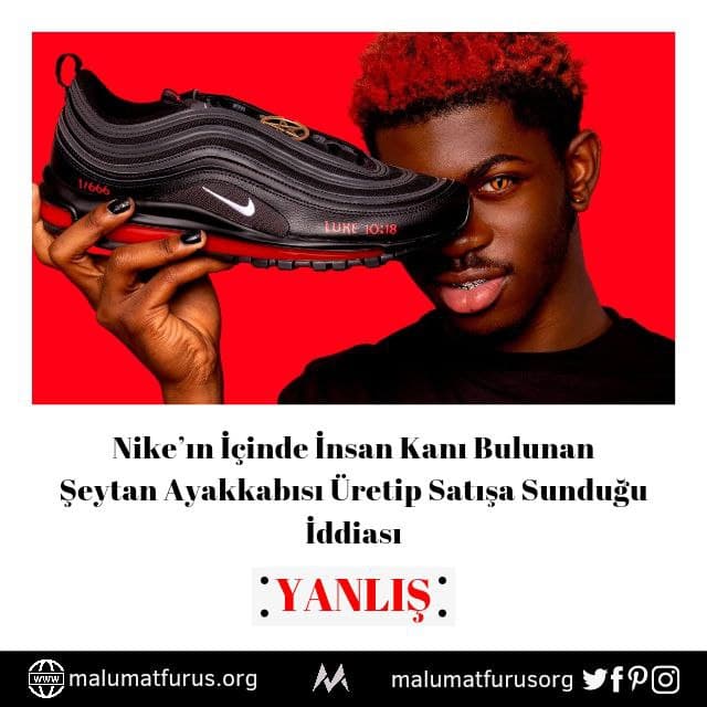 Ünlü spor kıyafeti ve aksesuarı tasarımcısı ve satıcısı Nike adlı firmanın Air Max 97 adlı modelinden esinlenen, 666 çift üretildiği ve “bir damla insan kanı içerdiği” öne sürülerek pazarlanmaya çalışılan ayakkabıya ilişkin sosyal medyada son günlerde paylaşılan iddiayı konu edineceğiz…