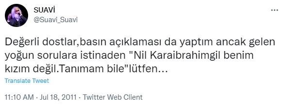 Suavi, bir diğer tweetinde Nil Karaibrahimgil’i tanımadığını şöyle ifade etmiş: