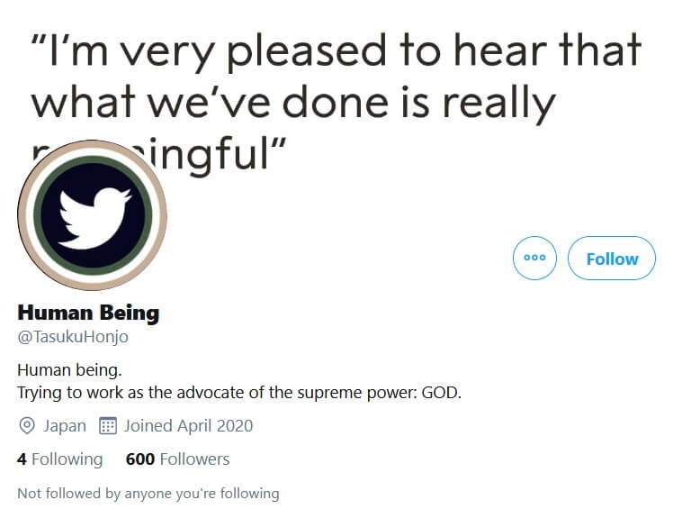 Anılan sahte hesap, ortaya attığı iddianın yayılmasının ardından paylaştıklarının gerçeği yansıtmadığını belirterek izni olmadan kendisini taklit ettiği Tasuku Honjo’dan özür dilemişti.