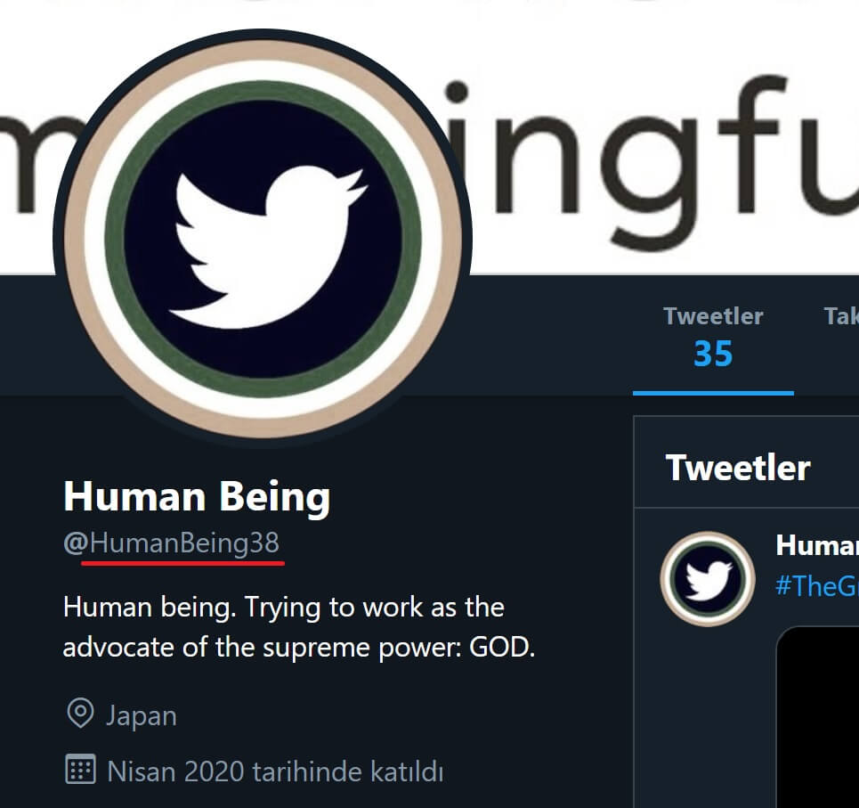 Prof. Dr. Tasuku Honjo’yu taklit eden hesabın daha sonra profil uzantısını humanbeing38‘ye çevrildiği görülmektedir.
