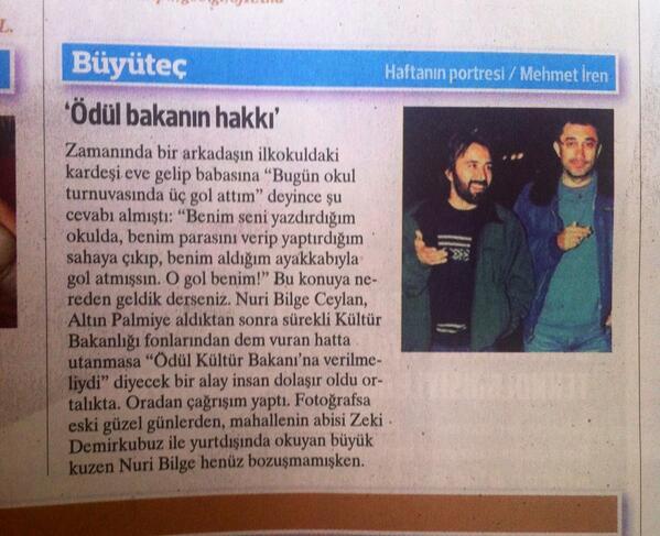 “Bir algı oluşturmaya yönelik hiçbir kanıtı olmayan bir sürü hayal ürünü iddiayla uğraşmak kolay değilmiş. Ama 2006 yılında Antalya’daki törene 40 derece ateşle geldiğimi, sağlık nedeniyle bayıldığımı bildiğin ve o dönemde bunu bütün gazeteler yazdığı halde hala öyle şeyler söyleyebilmen inanılmaz. Her zaman yaptığın gibi “madem böyle bir algı oluşmuş, öyleyse bundan yararlanayım” şeklinde düşünüyorsun. Tıpkı filmi bile seyretmeden yaptığın suçlamalar gibi. O senaryonun üzerinde sadece benim değil üç kişinin aylar süren alın teri ve emeği var. Birkaç kişi şöyle dedi böyle dedi diye seyretmek zahmetine bile katlanmadan bir filme kara çalmak, ona emek veren insanların onuruyla oynamak bu kadar kolay olmamalı. 2008 Altın Portakal’da Baba filmini izlemediğimi söylediğimi, bunu TV’de seyrettiğini belirtmişsin. Bu doğru değil. Baba filmini seyrettiğimi ve çok sevdiğimi daha dünya prömiyeri sonrasında Cannes’daki basın toplantısında söyledim. Soruyu da Atilla Dorsay sormuştu hatta. Cannes sitesinde podcastini bulabilirsin. Filmlerimin hiçbirinde hiçbir şekilde sana yapılmış bir gönderme yok. Filmlerimi böyle şeylerle kirletmek istemem. Ama yine de Kış Uykusu filminde Nihal’in Aydın’a söylediği küçük bir repliğin senin de içinde olduğun belli bir tipolojiyi iyi tarif ettiğini düşündüğümü inkar edemem. “Vicdan, ahlak, ideal, ilkeli olma, yaşamın amacı… bu sözler ağzından hiç eksilmedi. Birini küçük düşürmek, incitmek, karalamak istediğin zaman hep böyle sözler söylersin. Ama bence, bir insan bu kelimeleri bu kadar fazla kullanıyorsa esas ondan şüphe etmek lazım…” Daha birçok şey yazdım, sildim, vazgeçtim. “Bir insanın karakteri onun yazgısıdır” demiş Herakleitos. Yapacak bir şey yok. Kendimin ve çevremdeki insanların huzurunu daha fazla kaçırmayacağım. Ve bundan sonra da bir şey yazmayacağım. Böyle bir gereklilik doğarsa da buna mahkeme yoluyla devam ederim. Seni kendi gerçeğinle başbaşa bırakıyorum. Gördüğüm kadarıyla bu ceza sana zaten yetiyor. Herkese kavgasız dövüşsüz bir yeni yıl dilerim.”