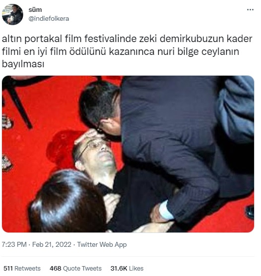 Mizah konusu yapılan NBC’nin yerde uzandığı fotoğraf, Altın Portakal’da bir diğer ünlü yönetmen Zeki Demirkubuz’un ödül almasının ardından bayıldığı anı yansıttığı iddiasıyla aktarılmıştı.