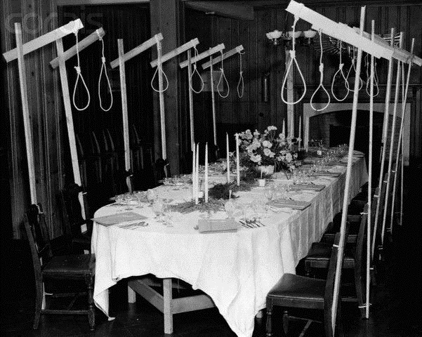 Aslında bu yazıyı kendimize bir hatırlatma babında kaleme alıyoruz. Sanal alemde doğrulama / yanlışlama faaliyeti sürdürürken bazen güvenilir sandığımız kaynaklar dahi bizi yanıltabiliyor. Nürnberg’den olduğu sanılan üzerinde idam ipi sallanan yemek masası fotoğrafı bunlardan biri.