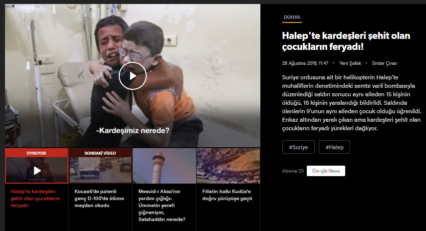 26 Ağustos 2016 tarihinde bahse konu kayıt “Halep’te kardeşleri şehit olan çocukların feryadı!” ve “İki çocuğun kardeş acısı yürek burktu” gibi başlıklarla haberleştirilmişti: