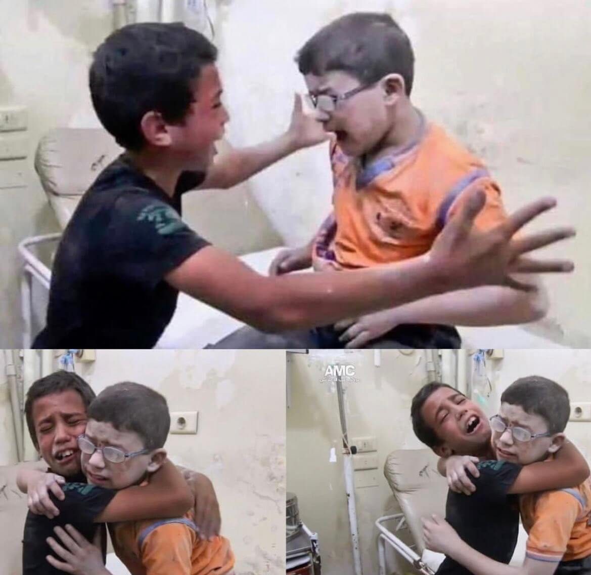 Paylaşılan görüntüde, saldırının ardından kardeşlerinin öldüğünü öğrenen iki çocuğun birbirlerine sarılarak ağladıkları görülüyor. pic.twitter.com/QmIDNk2ov6