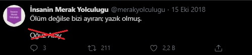 “Ölüm değilse bizi ayıran, yazık olmuş, hata yapmışız” sözünü Oğuz Atay’la bağdaştıran pek çok sosyal medya kullanıcısı olduğunu görüyoruz: