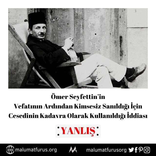 Ömer Seyfettin’in sahipsiz bir şekilde öldüğü, otopsisi sırasında başının kesildiği ve cesedinin kadavra olarak kullanıldığı iddiası gerçeği yansıtmamaktadır.