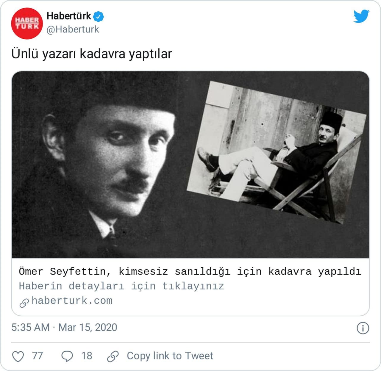“Ömer Seyfettin’in hazin hikayesi” ya da “Sahipsiz Biri Gibi Ölen ve Cesedi Kadavra Yapılan Ünlü Yazarımız Ömer Seyfettin’in Hazin Hikayesi” gibi başlıklarla gerçeği saptırarak aktaran anlatı şu şekilde:
