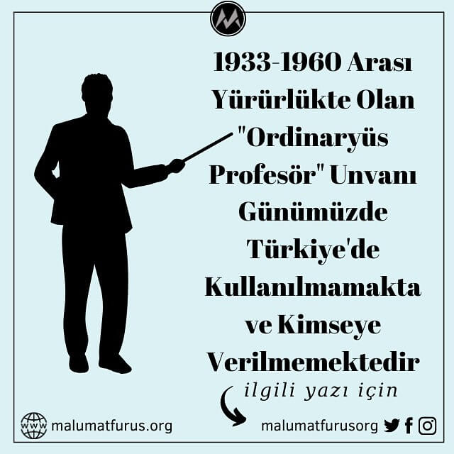 1933-1960 Arası Yürürlükte Olan Ordinaryüs Profesör Unvanı Günümüzde Türkiye’de Kullanılmamakta ve Kimseye Verilmemektedir