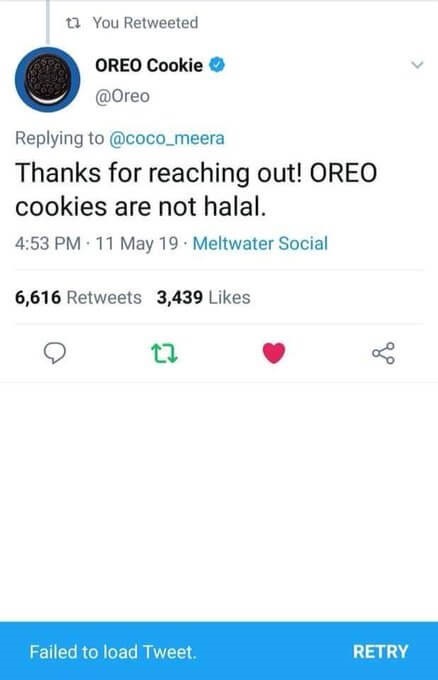 Orta Doğu ile Kuzey Afrika’da yer alan ülkeler ile Pakistan’da satılan Oreo bisküvilerinin helal sertifikasına sahip olduğu sosyal medya hesapları üzerinden de duyurulmuş: