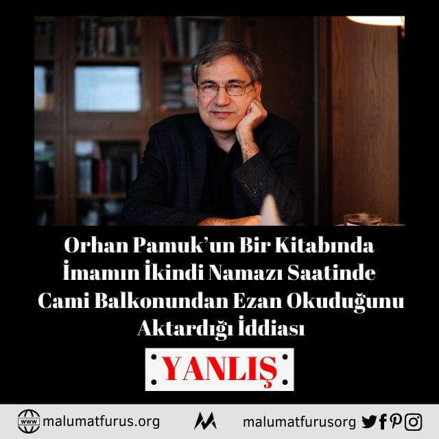 Orhan Pamuk’un Bir Kitabında “İmam İkindi Namazı Saatinde Caminin Balkonuna Çıkarak İkindi Ezanını Okudu” Şeklinde Bir Cümle Geçtiği İddiası Asılsız