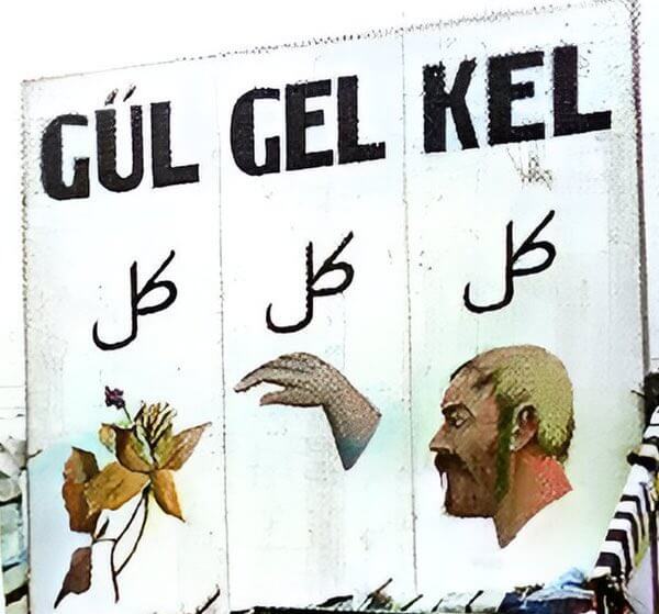 Yukarıda bahsi geçen pankarttaki Osmanlıca gel-gül-kel sözcüklerinin yazıma dönecek olursak…