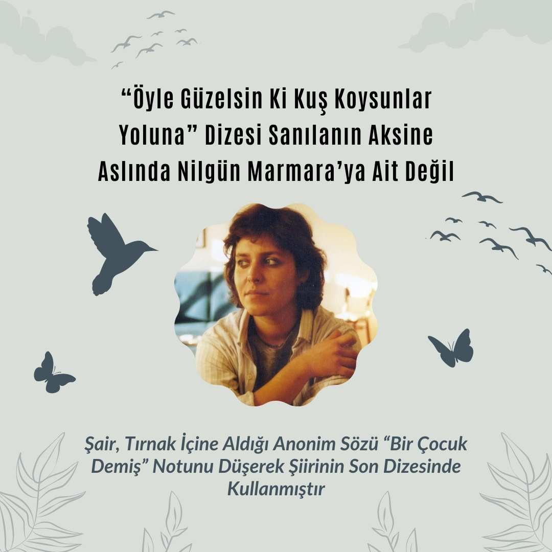 “Öyle Güzelsin Ki Kuş Koysunlar Yoluna” Dizesi Sanılanın Aksine Aslında Nilgün Marmara’ya Ait Değil