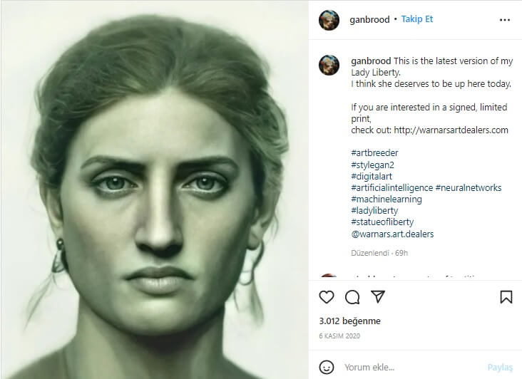 Halbuki, söz konusu görsel, resimleri, heykelleri ve diğer birçok tarihi figürleri gerçekçi bir portresine dönüştürmek için yapay zeka kullanan Bas Uterwijk adlı tasarımcının gerçekçi bir illüstrasyonuydu. Yani görsel, Uterwick’in “Lady Liberty gerçek bir insan olsaydı nasıl görünürdü?” sorusuna yönelik yorumunu yansıtıyordu.