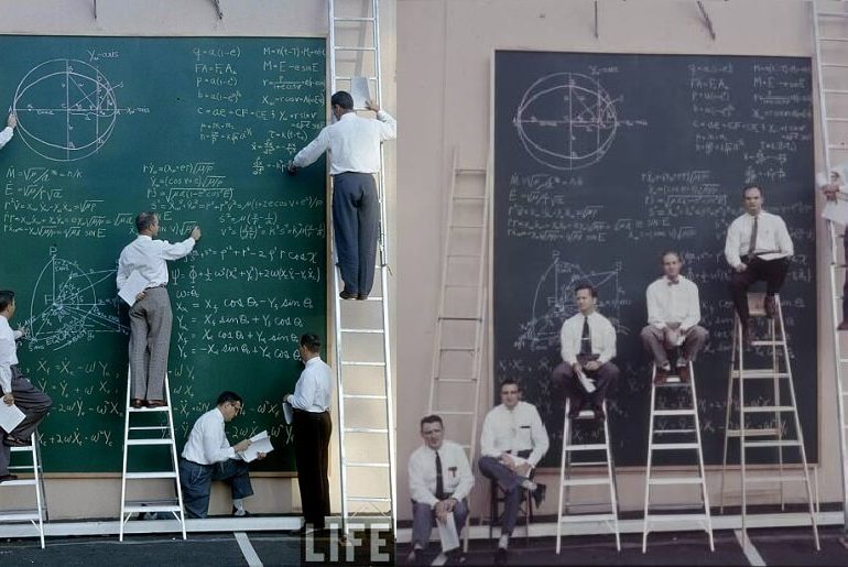 Fotoğrafın NASA’da Çalışan Bilim İnsanlarının 1961 Yılında Kara Tahtada Hazırladığı Sunumu Yansıttığı İddiası Doğru Değil “Hesaplamalarıyla poz veren NASA’de…
