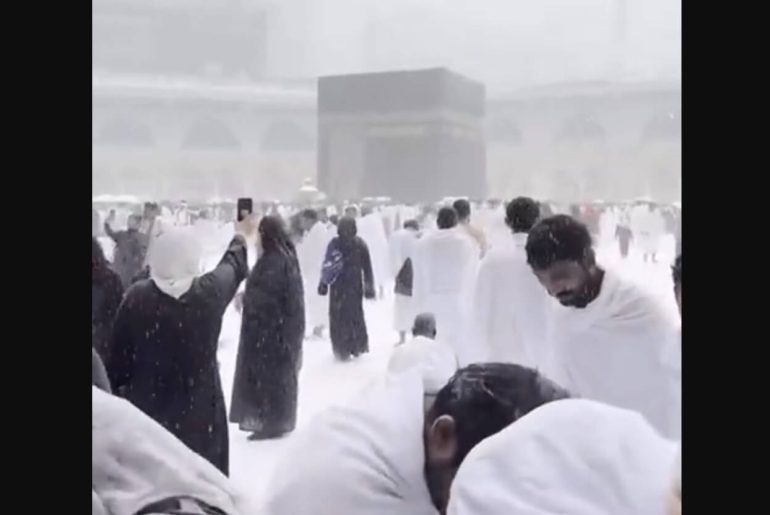 1 Ocak 2023 Tarihinde Suudi Arabistan’ın Mekke Kentinde Bulunan Kâbe’ye Kar Yağdığı Anda Kaydedildiği İddiasıyla Paylaşılan Video Görsel Efekt İçeriyor…