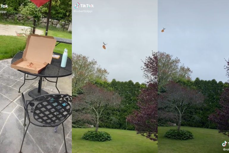 Videonun ABD’nin Kaliforniya Eyaletinde Bahçede Bırakılan Pizzayı Alıp Göğe Uçan Martının Pizzanın Sahibi Tarafından Kaydedildiği Anı Yansıttığı İddiası Doğru Değil…