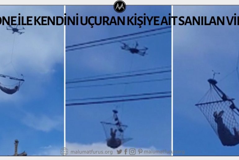 Drone İle Hamakta Kendini Havada Uçuran Bir İnsana Ait Sanılan Video Kaydı Cansız Bir Manken Kullanılarak Bir Reklam İçin Oluşturulmuş…