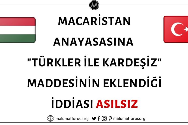 Macaristan Anayasasına “Türklerle Kardeşiz” Maddesinin Eklendiği İddiası Asılsız Macaristan’ın Anayasasına “Türkler ile kardeşiz” maddesini eklediği iddiası gerçek dışıdır. Macaristan’ın 2011…