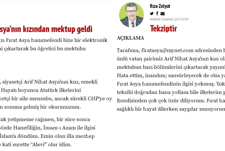 Arif Nihat Asya’nın Kızı Rıza Zelyut’a Mektup Mu Gönderdi? Daha önce birçok köşe yazarının muzip okurlarının oyununa geldiğini Malumatfuruş’ta yayınlamıştık.…