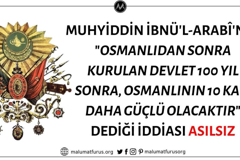 Muhyiddin İbnü’l-Arabî’nin “Osmanlıdan Sonra Kurulan Devlet 100 Yıl Sonra, Osmanlının 10 Katı Daha Güçlü Olacaktır” Dediği İddiası Asılsız 1240 yılında…